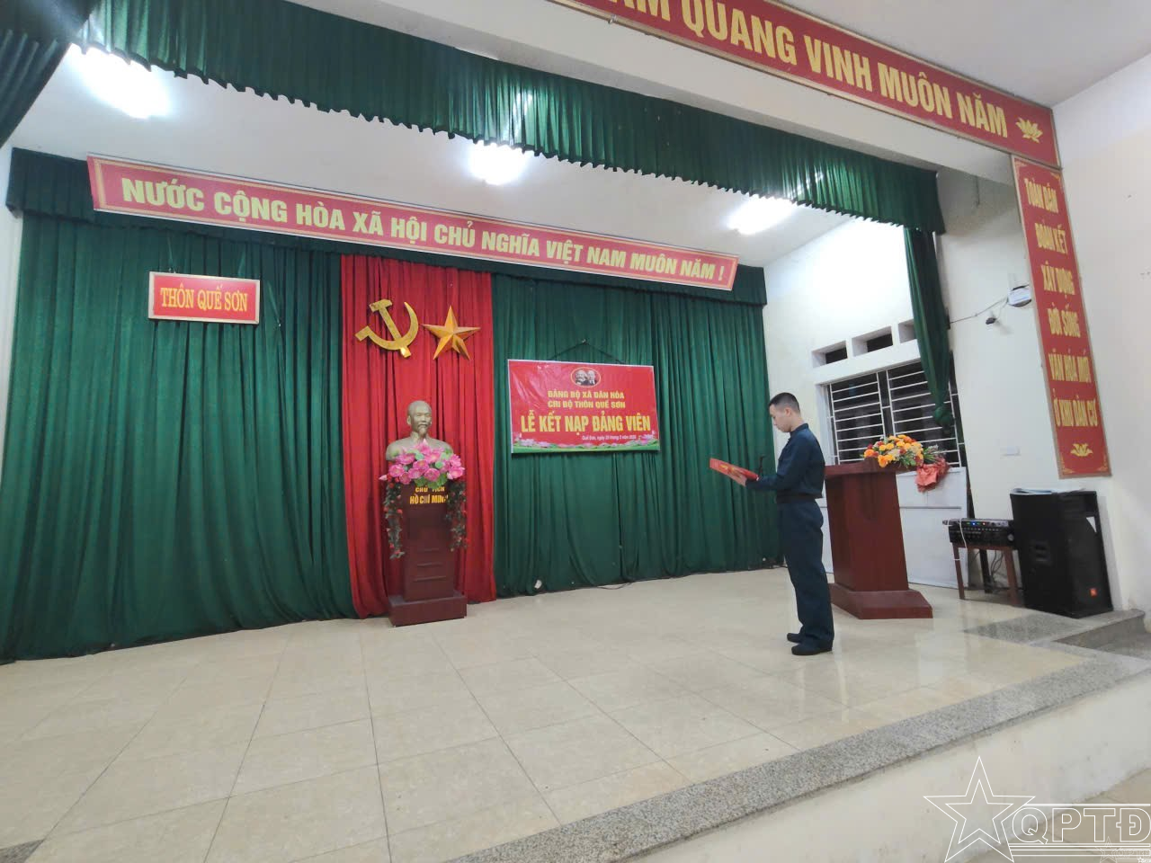 Giữa không khí rộn ràng hướng đến ngày hội tòng quân, câu chuyện về 10 thanh niên xã Dân Hòa viết đơn tình nguyện nhập ngũ đã trở thành nguồn cảm hứng lớn cho tuổi trẻ địa phương. Trong số đó, công dân Nguyễn Bá Giang (thôn Quế Sơn) là một công dân tiêu biểu. Tối ngày 25/2, dưới ánh đèn trang nghiêm của hội trường thôn Quế Sơn, Giang vinh dự được kết nạp vào Đảng Cộng sản Việt Nam ngay trước giờ xuất quân. Đứng trước Đảng kỳ và chân dung Chủ tịch Hồ Chí Minh, lời tuyên thệ của Giang vang lên dõng dạc, thể hiện bản lĩnh của một người lính trẻ. Trung tá Đỗ Trung Kiên, chia sẻ đầy tự hào: “Việc kết nạp Đảng cho công dân trước khi nhập ngũ không chỉ là ghi nhận sự phấn đấu của cá nhân mà còn là để bồi dưỡng nguồn cán bộ kế cận cho quân đội và địa phương. Chúng tôi chọn những thanh niên tiêu biểu nhất, có lý tưởng sống cao đẹp để “tiếp lửa” cho các em trước khi bước vào môi trường kỷ cương quân ngũ”.