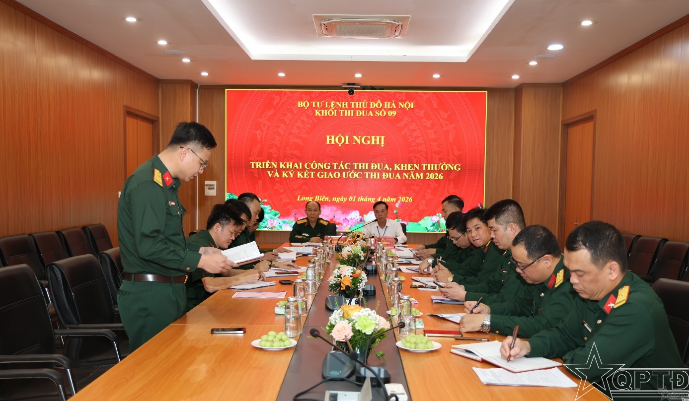 QPTĐ-Chiều 1-4, Khối Thi đua số 9, Bộ Tư lệnh Thủ đô Hà Nội (gồm 6 đơn vị là Ban CHQS các xã, phường: Long Biên, Gia Lâm, Bát Tràng, Thuận An, Phúc Lợi, Phù Đổng do Ban CHQS phường Long Biên làm Khối trưởng) đã tổ chức Hội nghị triển khai công tác thi đua, khen thưởng và ký kết giao ước thi đua năm 2026.