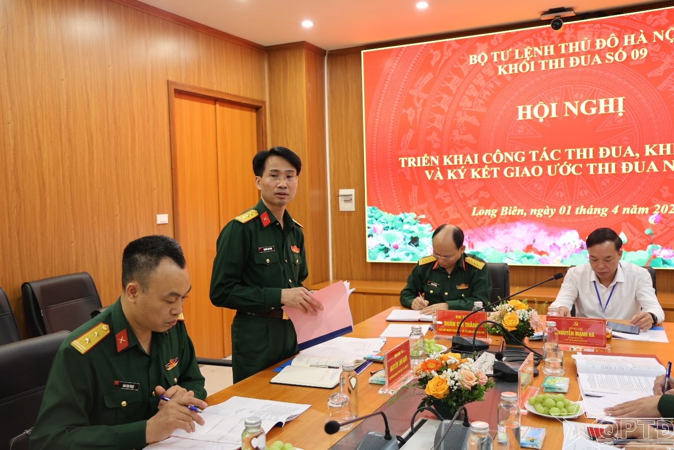 Tại Hội nghị, thay mặt Khối trưởng Khối thi đua số 9 đã công bố Quyết định số 3583/QĐ-BTL, ngày 15/12/2025 của Bộ Tư lệnh về việc kiện toàn khối thi đua, phân công đơn vị Khối trưởng các khối thi đua trong Bộ Tư lệnh. Theo đó Ban CHQS phường Long Biên được phân công đơn vị Khối trưởng Khối thi đua số 9 năm 2026. Sau nội dung công bố quyết định, các đơn vị đã quán triệt, triển khai và cụ thể hóa công tác thi đua, khen thưởng và nội dung, chỉ tiêu Phong trào Thi đua Quyết thắng năm 2026 của Bộ Tư lệnh. Đồng thời, thống nhất xây dựng Quy chế, Chương trình làm việc, xác định nội dung, chỉ tiêu, giải pháp thi đua năm 2026 sát với tình hình nhiệm vụ của từng đơn vị thành viên trong Khối, góp phần tạo khí thế thi đua sôi nổi, phát huy tiềm năng sáng tạo, nâng cao tinh thần đoàn kết, ý chí tự lực, tự cường, khắc phục mọi khó khăn, phấn đấu vươn lên, hoàn thành xuất sắc nhiệm vụ được giao. Trong đó, các đơn vị tiếp tục đổi mới nội dung, hình thức hoạt động của Khối thi đua gắn với các cuộc vận động, phong trào thi đua của các cấp, các ngành và việc đẩy mạnh học tập, làm theo tư tưởng, đạo đức, phong cách Hồ Chí Minh; thực hiện Nghị quyết Trung ương 4 (khóa XIII) về tăng cường xây dựng, chỉnh đốn Đảng và hệ thống chính trị; Nghị quyết số 847-NQ/QUTW, ngày 28/1/2021 của Quân ủy Trung ương về phát huy phẩm chất “Bộ đội Cụ Hồ”, kiên quyết chống chủ nghĩa cá nhân trong tình hình mới; Chỉ thị số 24-CT/TU của Ban Thường vụ Thành ủy Hà Nội về tăng cường kỷ cương, kỷ luật và trách nhiệm giải quyết công việc trong hệ thống chính trị thành phố Hà Nội; tập trung đột phá mạnh mẽ, khắc phục dứt điểm khâu yếu, mặt yếu của từng đơn vị. Xây dựng tổ chức đảng trong sạch vững mạnh tiêu biểu, đơn vị vững mạnh toàn diện “Mẫu mực, tiêu biểu”.