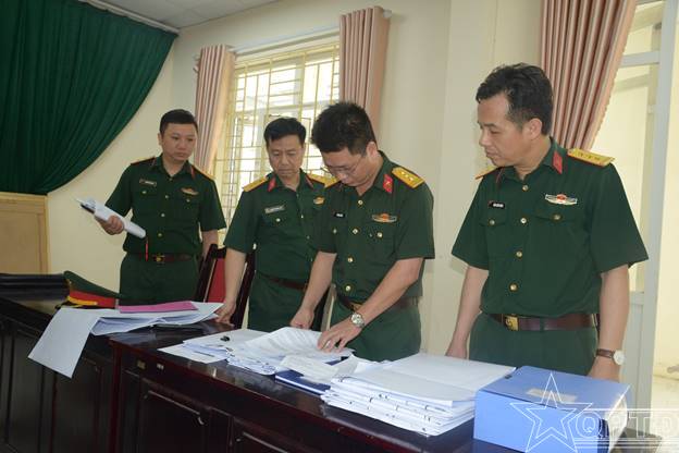 Kiểm tra hệ thống văn kiện SSCĐ tại Ban CHQS xã An Khánh.