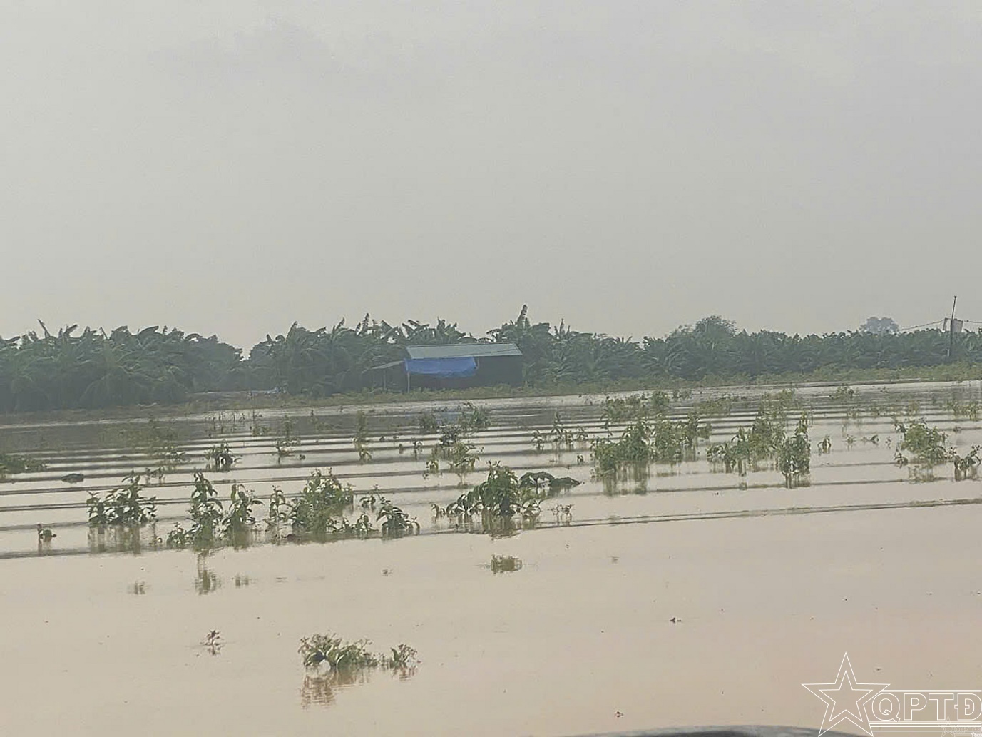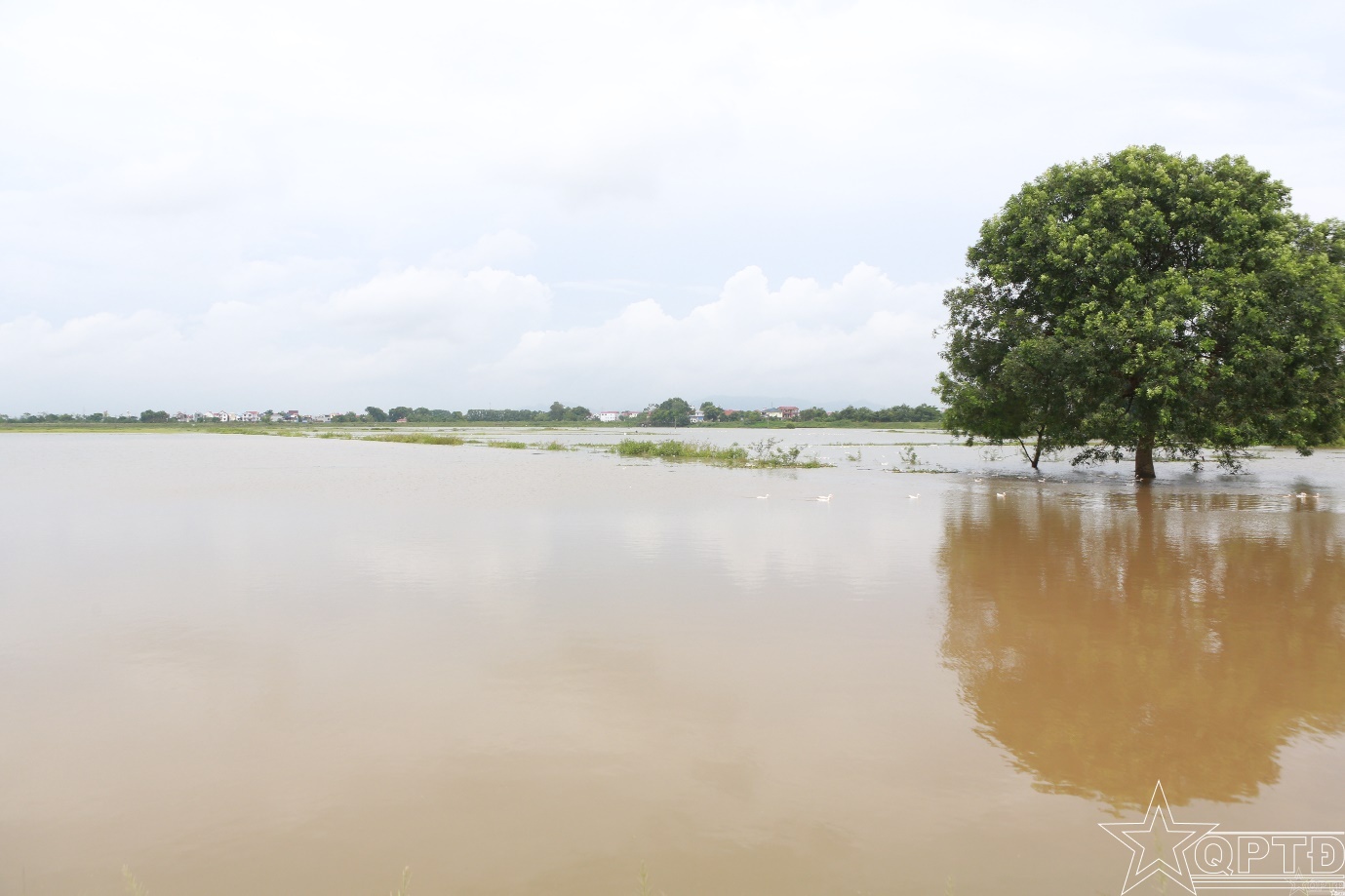 Mưa lớn làm một phần ruộng lúa của bà con nhân dân xã Đa Phúc bị ngập trắng.