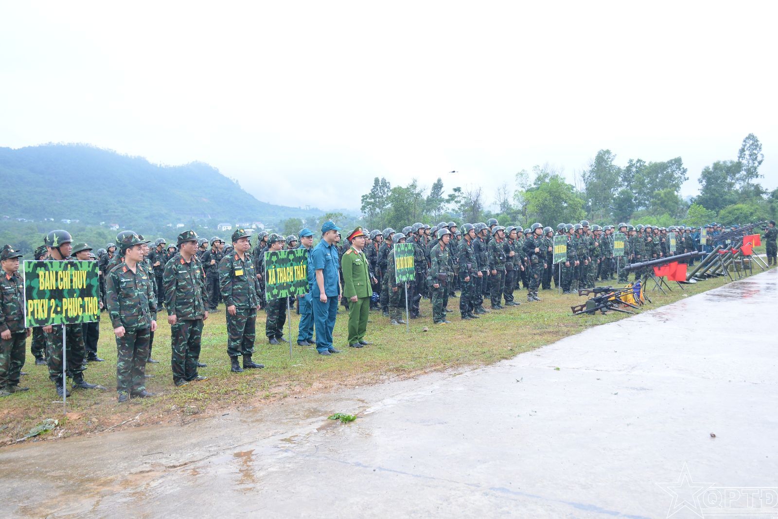 QPTĐ-Sáng 8-11, tại Trường bắn TB4, Ban Chỉ đạo diễn tập khu vực phòng thủ thành phố Hà Nội chỉ đạo Ban Chỉ huy phòng thủ khu vực 2-Phúc Thọ và xã Thạch Thất tổ chức thực binh bắn chiến đấu, đề mục: Tiểu đoàn bộ binh (thiếu) phối hợp với lực lượng dân quân xã tiến công địch đổ bộ đường không khu vực điểm cao 50. Đây là nội dung quan trọng trong Diễn tập tác chiến phòng thủ Khu vực 2-Phúc Thọ và xã Thạch Thất năm 2025.