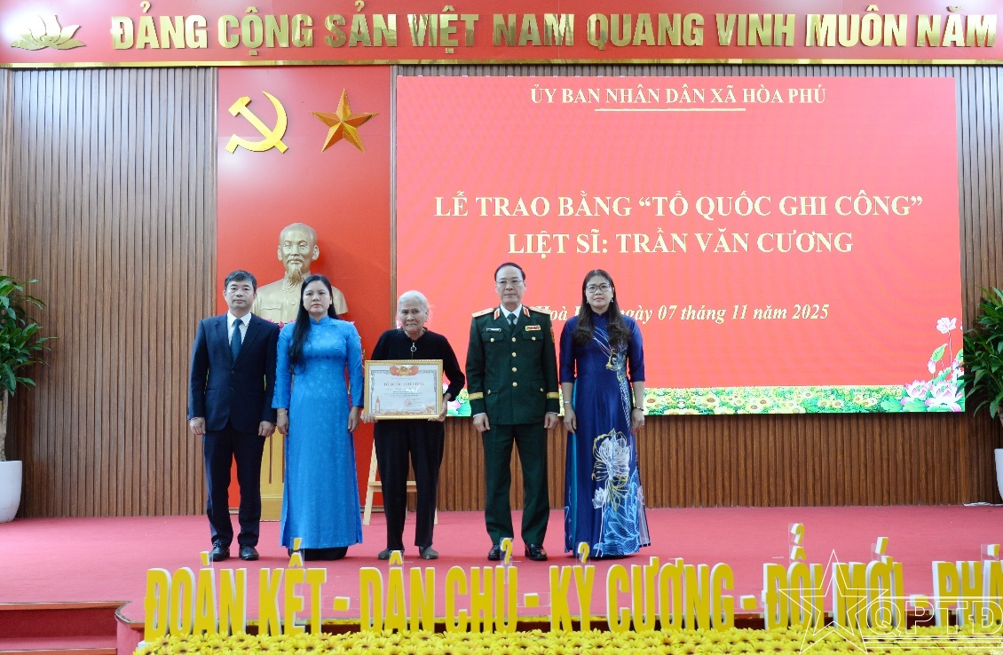 QPTĐ-Chiều ngày 7-11, trong không khí trang nghiêm và xúc động, Đảng ủy- HĐND-UBND-Ủy ban MTTQ Việt Nam xã Hòa Phú long trọng tổ chức Lễ công bố Quyết định của Thủ tướng Chính phủ và trao Bằng “Tổ quốc ghi công” cho liệt sĩ Trần Văn Cương, quê quán thôn Phụ Chính, xã Hòa Phú (thành phố Hà Nội) người con ưu tú của quê hương đã anh dũng hy sinh vì sự nghiệp giải phóng dân tộc.