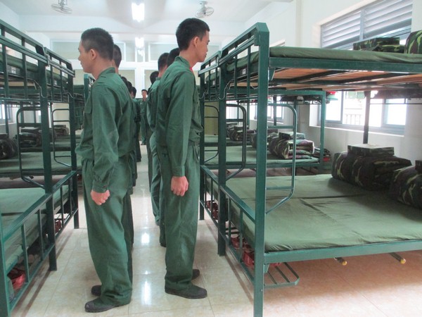 Chiến sĩ mới Trung đoàn 692, Sư đoàn Bộ binh 301 kiểm tra trật tự nội vụ vệ sinh.