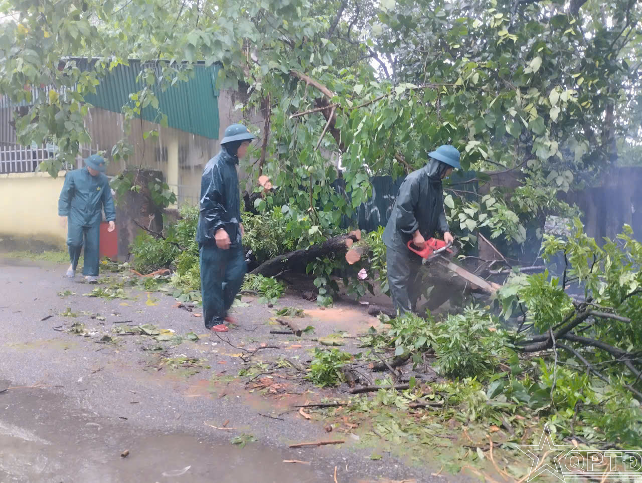 QPTĐ-Ngày 7-10, Ban Chỉ huy phòng thủ khu vực 3-Hồng Hà đã huy động cán bộ, nhân viên và lực lượng dân quân các phường trên địa bàn tham gia khắc phục hậu quả hoàn lưu bão số 11 gây ra.