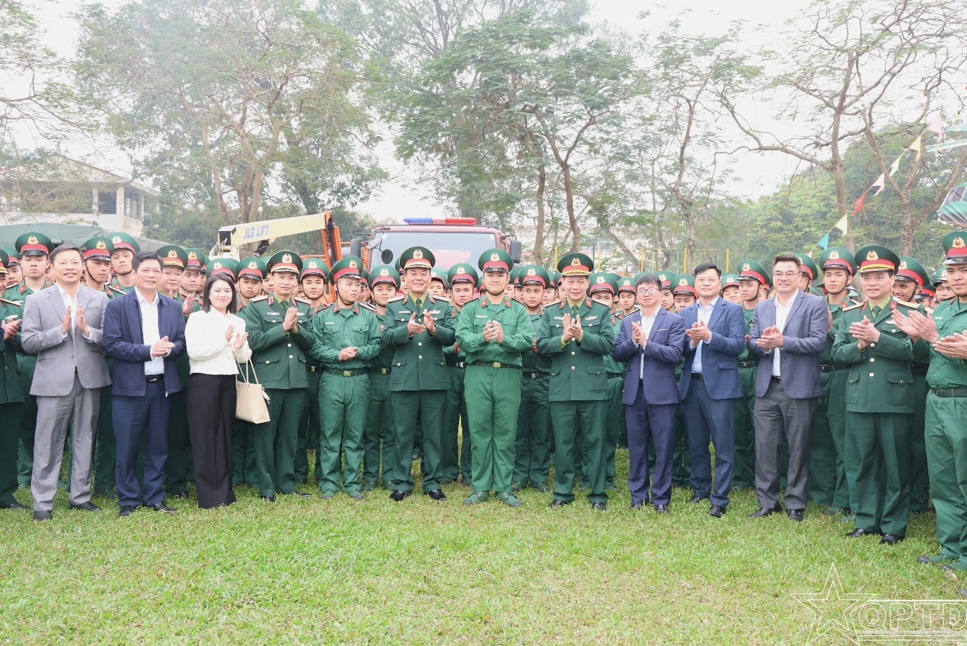 Các đại biểu chụp ảnh lưu niệm với chiến sĩ mới.