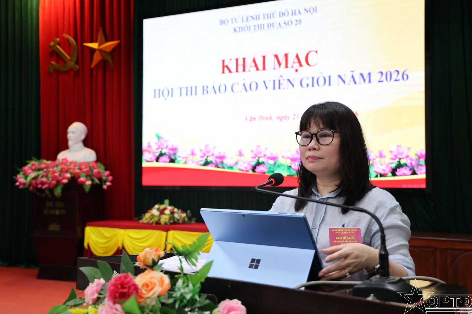 QPTĐ-Sáng 23/4, Khối thi đua số 20, Bộ Tư lệnh Thủ đô Hà Nội đã tổ chức Hội thi Báo cáo viên giỏi năm 2026 tuyên truyền Nghị quyết Đại hội lần thứ XIV của Đảng và Nghị quyết đại hội đảng bộ các cấp nhiệm kỳ 2025-2030.