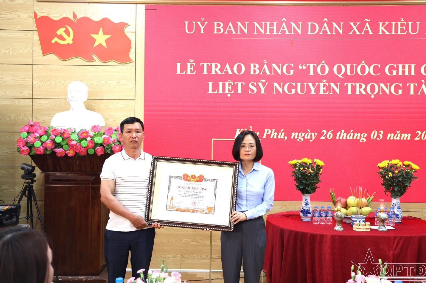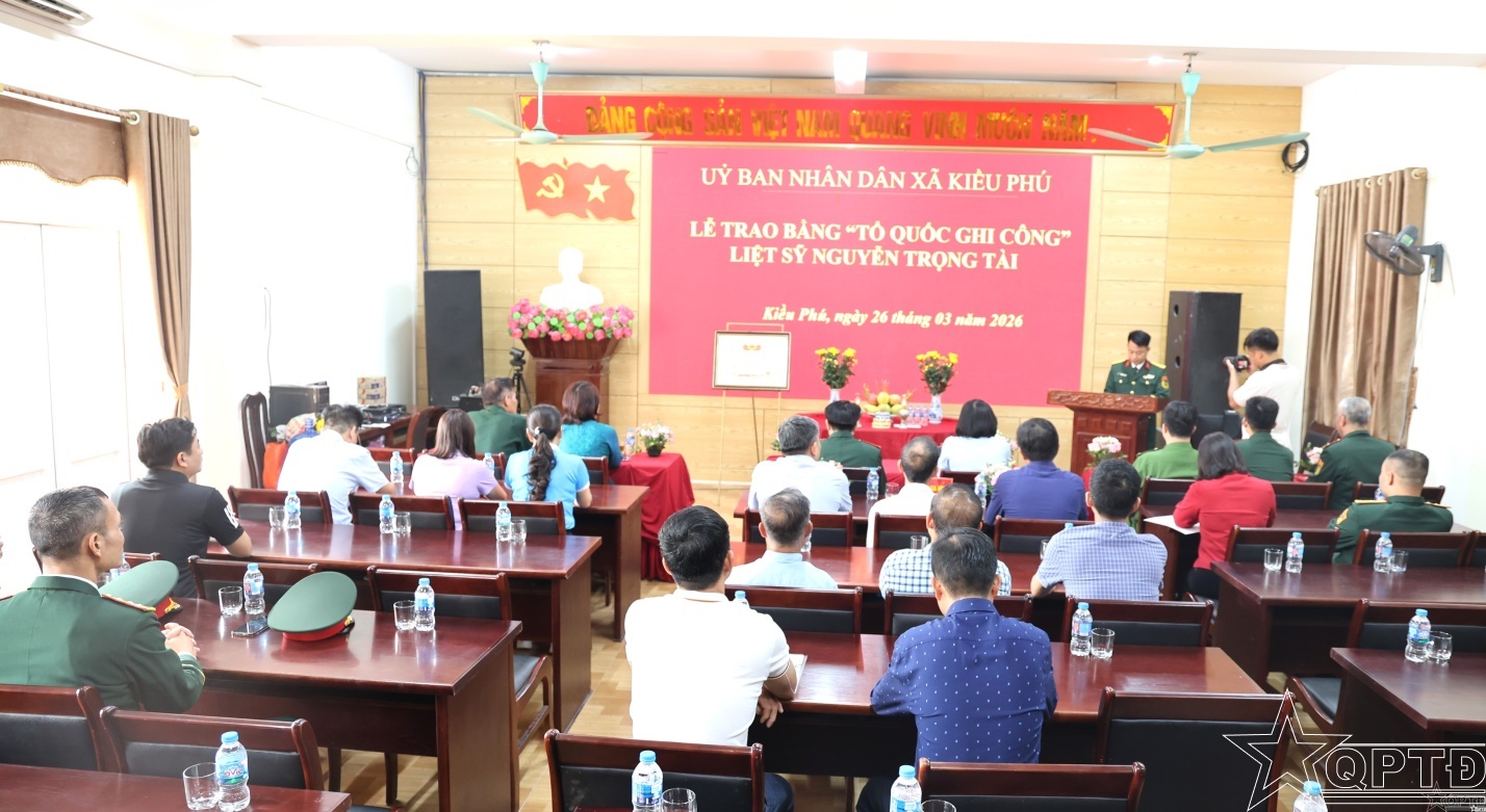 QPTĐ-Chiều 26-3, UBND xã Kiều Phú đã tổ chức Lễ trao Bằng Tổ quốc ghi công Liệt sỹ Nguyễn Trọng Tài.