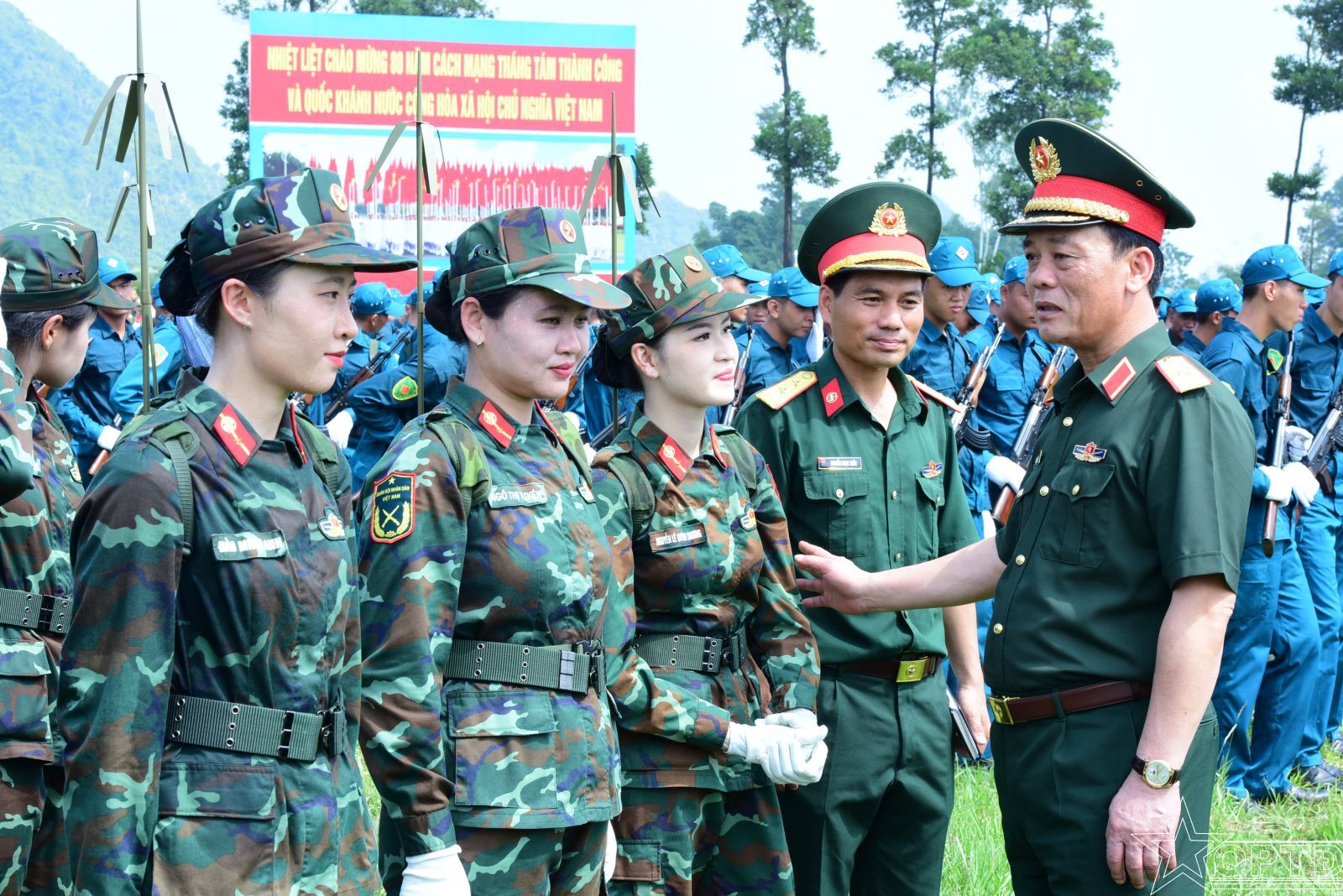 Thiếu tướng Đào Văn Nhận, Ủy viên Ban Thường vụ Thành ủy, Tư lệnh Bộ Tư lệnh Thủ đô Hà Nội kiểm tra, động viên lực lượng tham gia Lễ Diễu binh, diễu hành kỷ niệm 80 năm Cách mạng Tháng Tám thành công và Quốc khánh nước Cộng hòa xã hội chủ nghĩa Việt Nam.