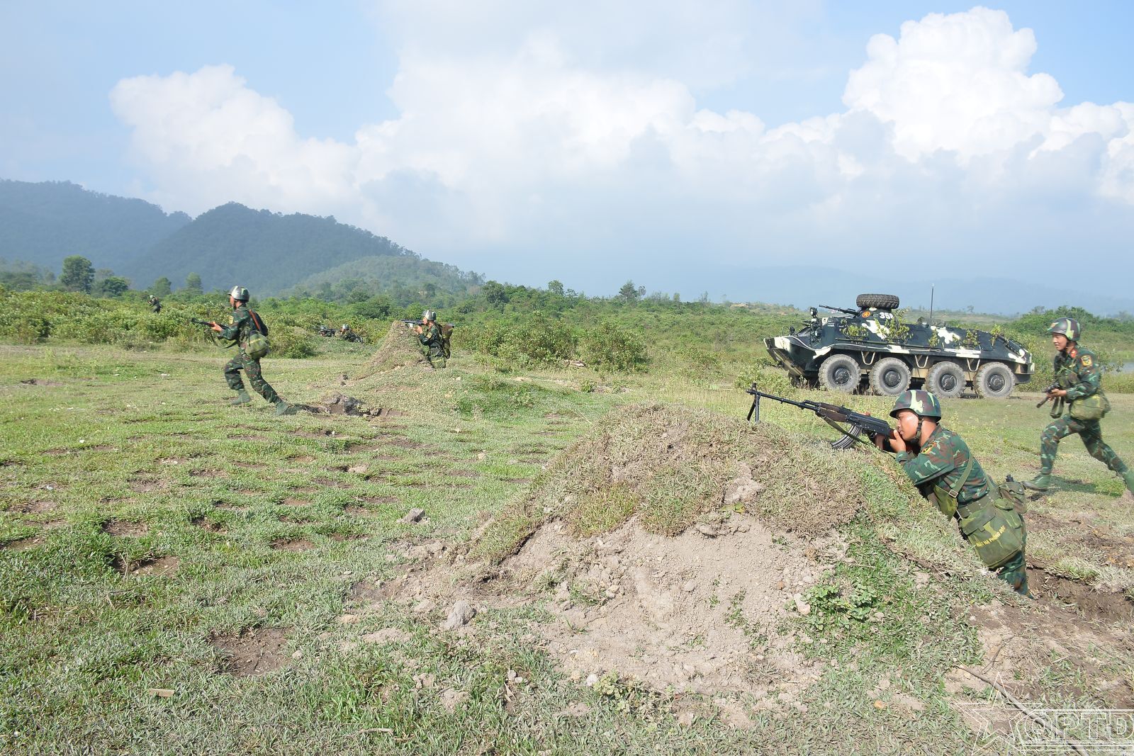 Thực binh tiến công địch đổ bộ đường không trong diễn tập của Sư đoàn Bộ binh 301 năm 2025.