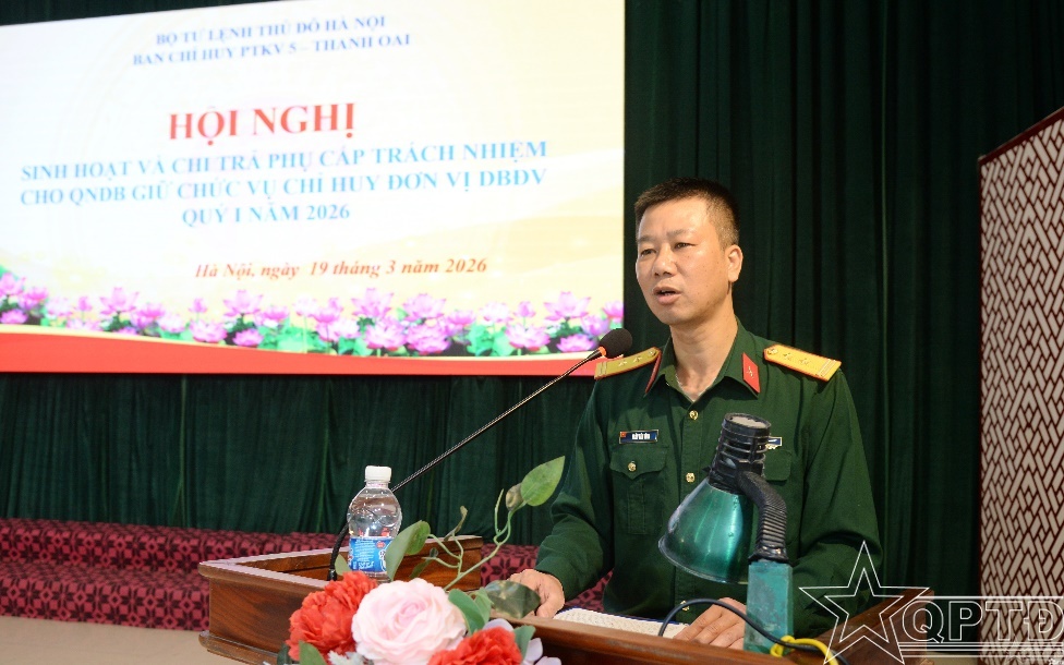 QPTĐ-Sáng ngày 19-3, Ban Chỉ huy PTKV5-Thanh Oai đã tổ chức Hội nghị sinh hoạt, kết hợp với chi trả phụ cấp trách nhiệm cho quân nhân dự bị giữ chức vụ chỉ huy đơn vị dự bị động viên quý I năm 2026 tại xã Mỹ Đức.