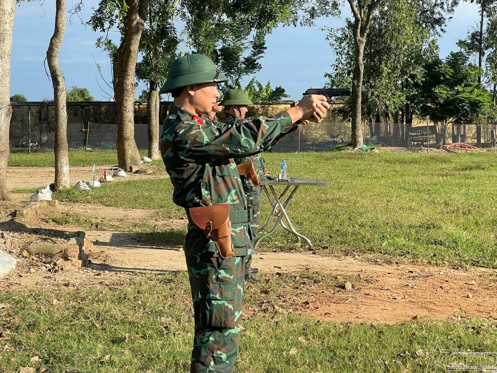 Các đồng chí sĩ quan của đơn vị luyện tập bắn súng ngắn K54.