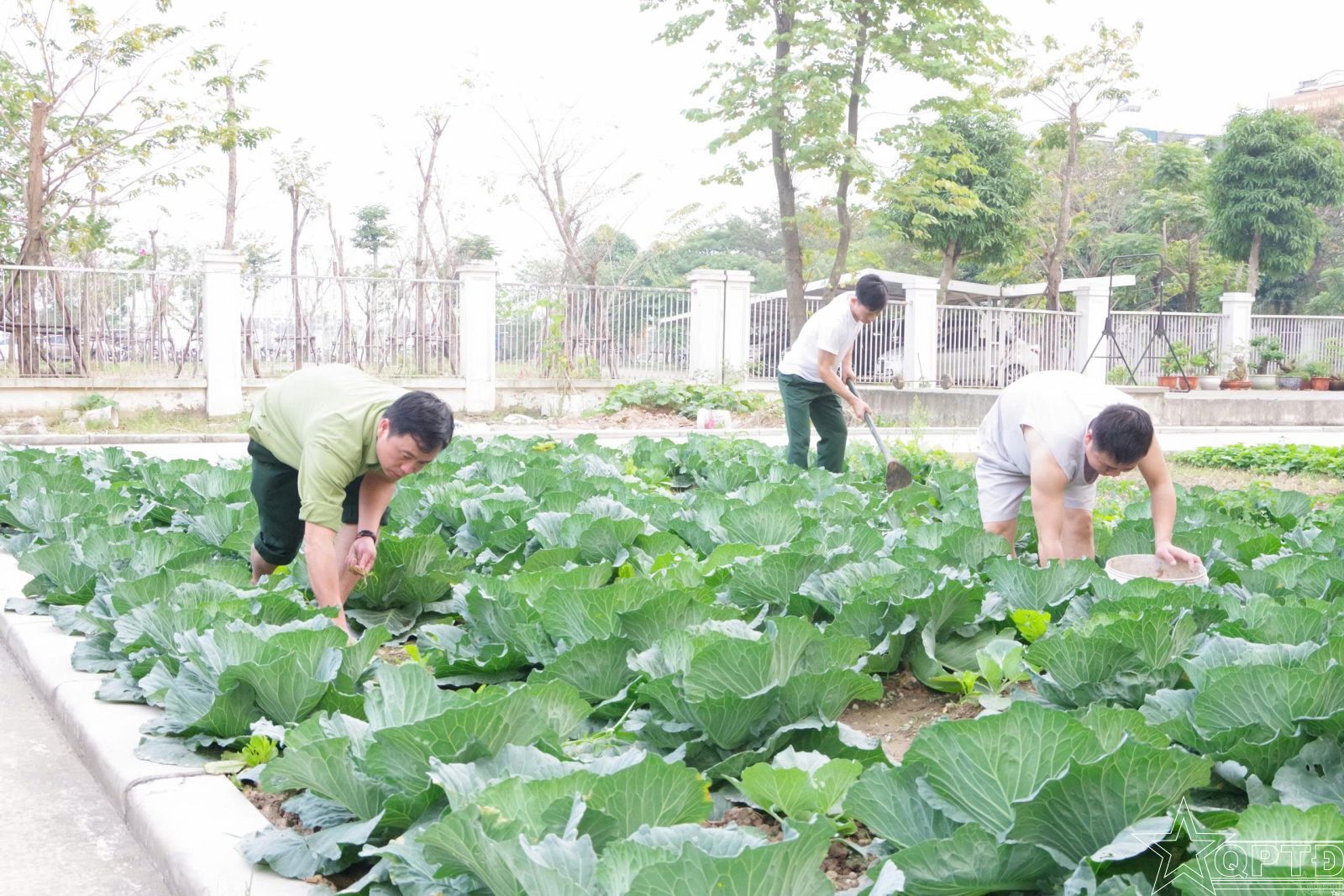 Sau giờ huấn luyện, cán bộ, nhân viên đơn vị đều chú trọng tăng gia sản xuất.