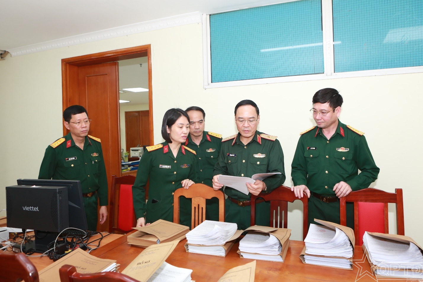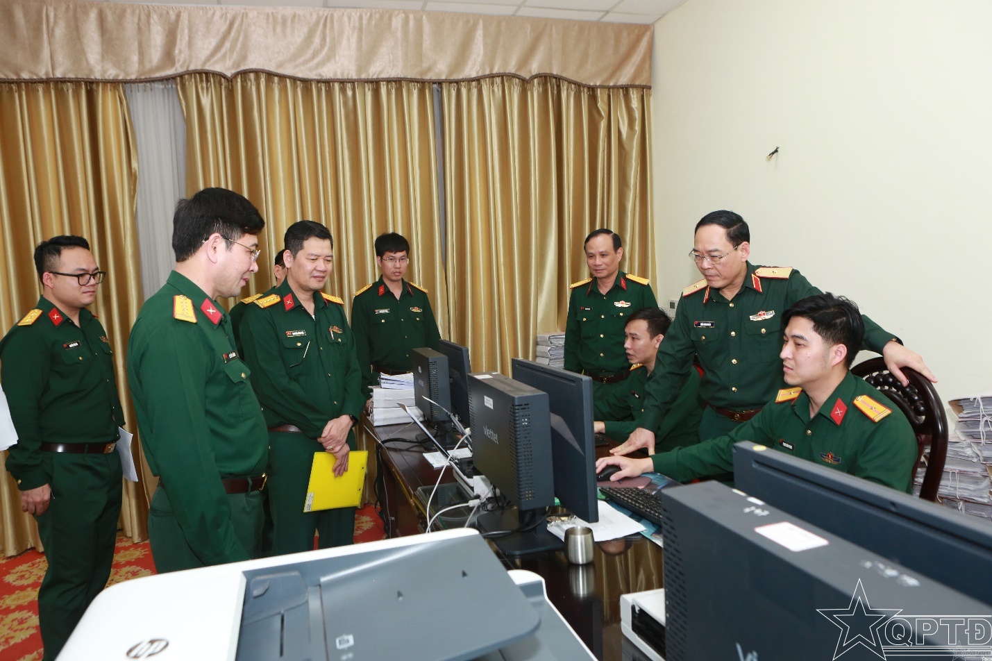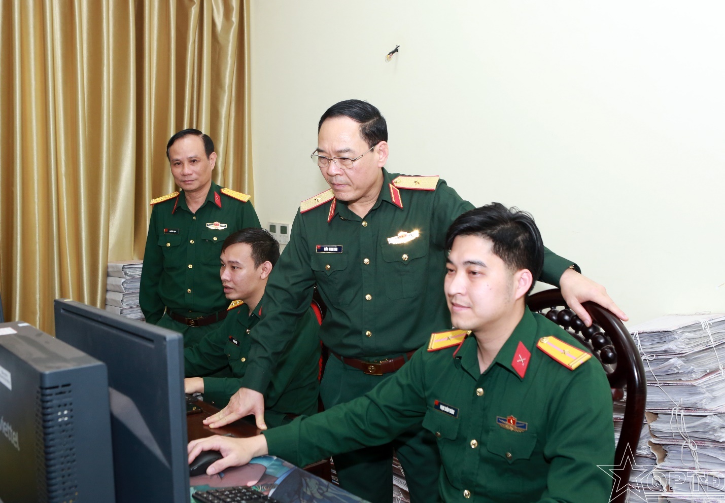 QPTĐ-Chiều 31-3, Đoàn Công tác do Thiếu tướng Trần Minh Toản, Phó Tư lệnh Bộ Tư lệnh Thủ đô Hà Nội làm Trưởng đoàn đã kiểm tra công tác số hoá hồ sơ của Bộ Tham mưu và Cục Chính trị.