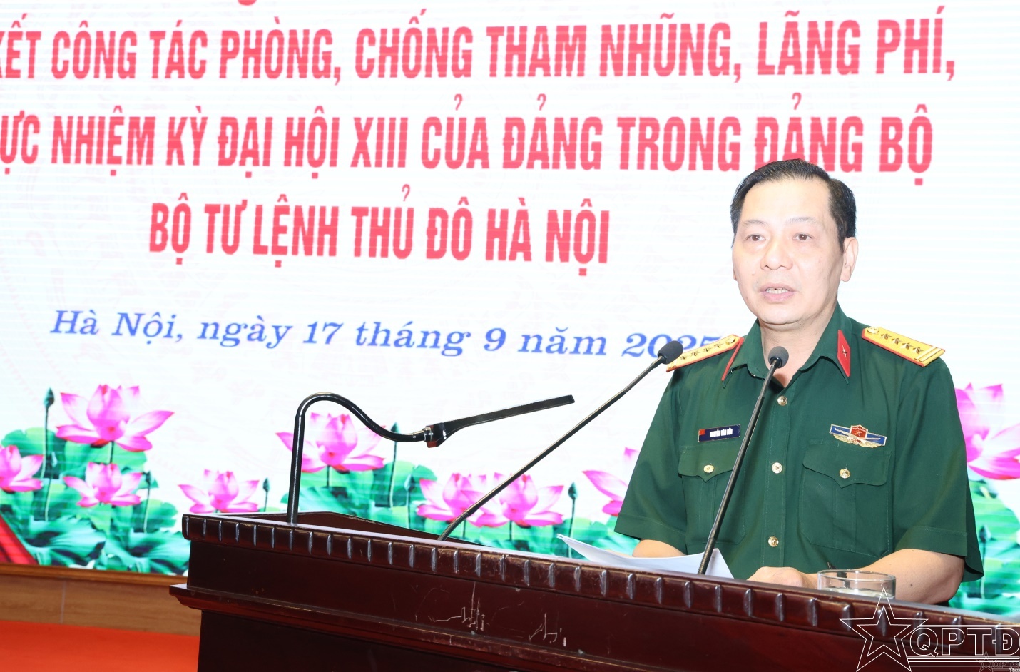 QPTĐ-Sáng 17-9, Đảng ủy Bộ Tư lệnh Thủ đô Hà Nội đã tổ chức Hội nghị tổng kết công tác phòng, chống tham nhũng, lãng phí, tiêu cực nhiệm kỳ Đại hội XIII của Đảng trong Đảng bộ Bộ Tư lệnh Thủ đô Hà Nội.