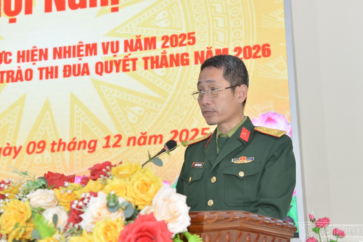 Phát biểu chỉ đạo tại Hội nghị, Thiếu tướng Nguyễn Khắc Nhân, Phó Chính uỷ Bộ Tư lệnh Thủ đô Hà Nội biểu dương, ghi nhận và đánh giá cao kết quả thực hiện nhiệm vụ trong năm 2025 của Trung đoàn. Về phương hướng, nhiệm vụ năm 2026, đồng chí Phó Chính uỷ yêu cầu Trung đoàn tiếp tục nâng cao chất lượng huấn luyện khung thường trực và lực lượng DBĐV theo phương châm “cơ bản, thiết thực, vững chắc”. Đẩy mạnh học tập, bồi dưỡng kiến thức, kỹ năng số cho quân nhân theo Phong trào “Bình dân học vụ số”. Nâng cao chất lượng xây dựng nền nếp chính quy, rèn luyện kỷ luật, chấp hành điều lệnh, điều lệ và bảo đảm an toàn giao thông. Tập trung xây dựng Đảng bộ Trung đoàn vững mạnh về chính trị, tư tưởng, tổ chức và đạo đức. Bảo đảm tốt hậu cần, tài chính, kỹ thuật cho thực hiện các nhiệm vụ; tích cực đổi mới nội dung, hình thức, phương pháp tổ chức phong trào thi đua…