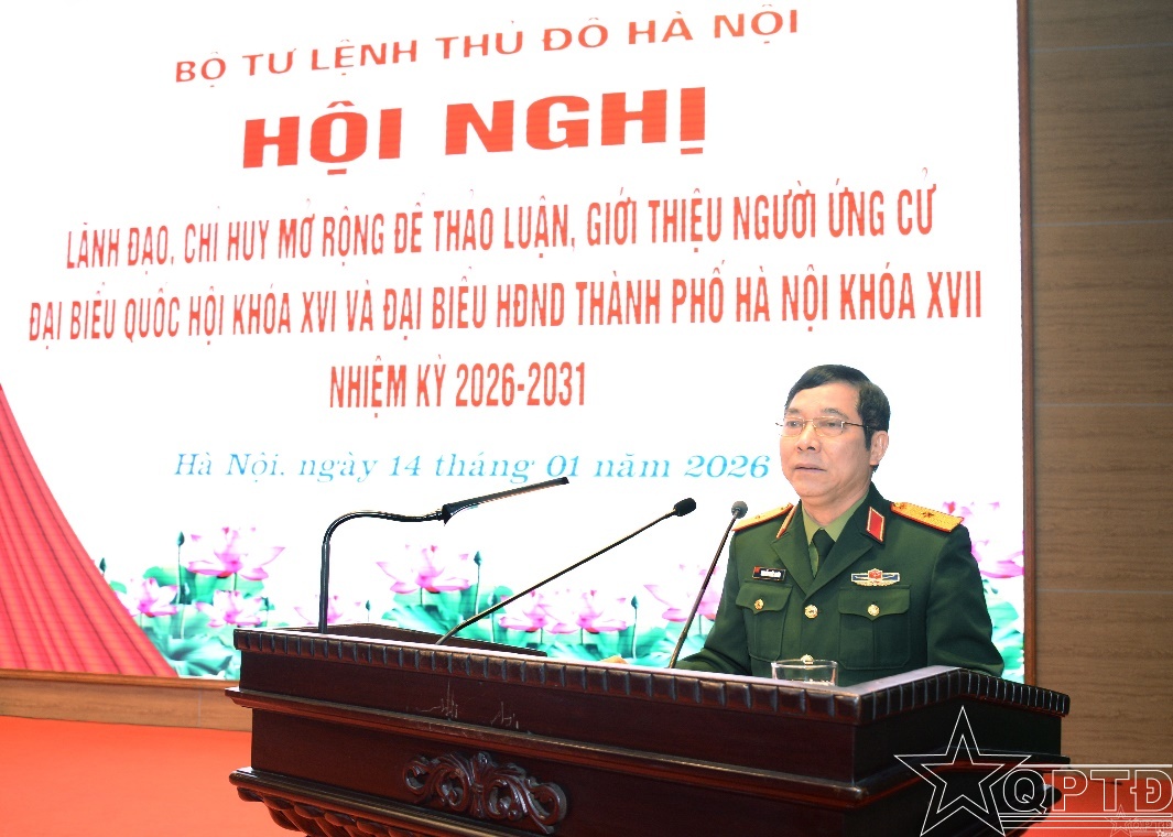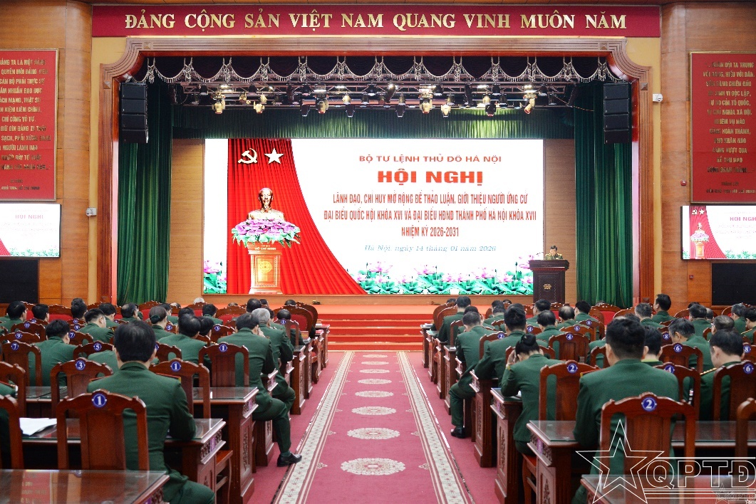 QPTĐ-Chiều 14-1, Bộ Tư lệnh Thủ đô Hà Nội tổ chức hội nghị lãnh đạo, chỉ huy mở rộng thảo luận, giới thiệu người ứng cử đại biểu Quốc hội khóa XVI và đại biểu Hội đồng nhân dân (HĐND) thành phố Hà Nội khóa XVII, nhiệm kỳ 2026-2031. Thiếu tướng Nguyễn Khắc Nhân, Phó Chính ủy Bộ Tư lệnh Thủ đô Hà Nội, chủ trì hội nghị.