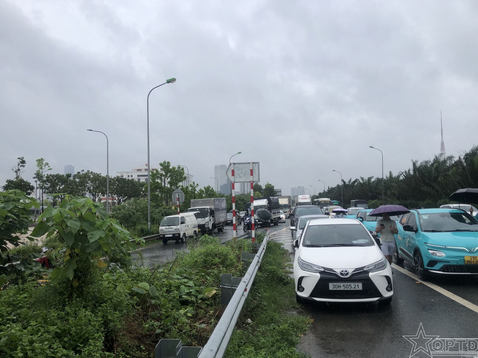 Một xe ô tô bị chết máy tại hầm chui gần Trung tâm Đăng kiểm Xe cơ giới 29-21D.