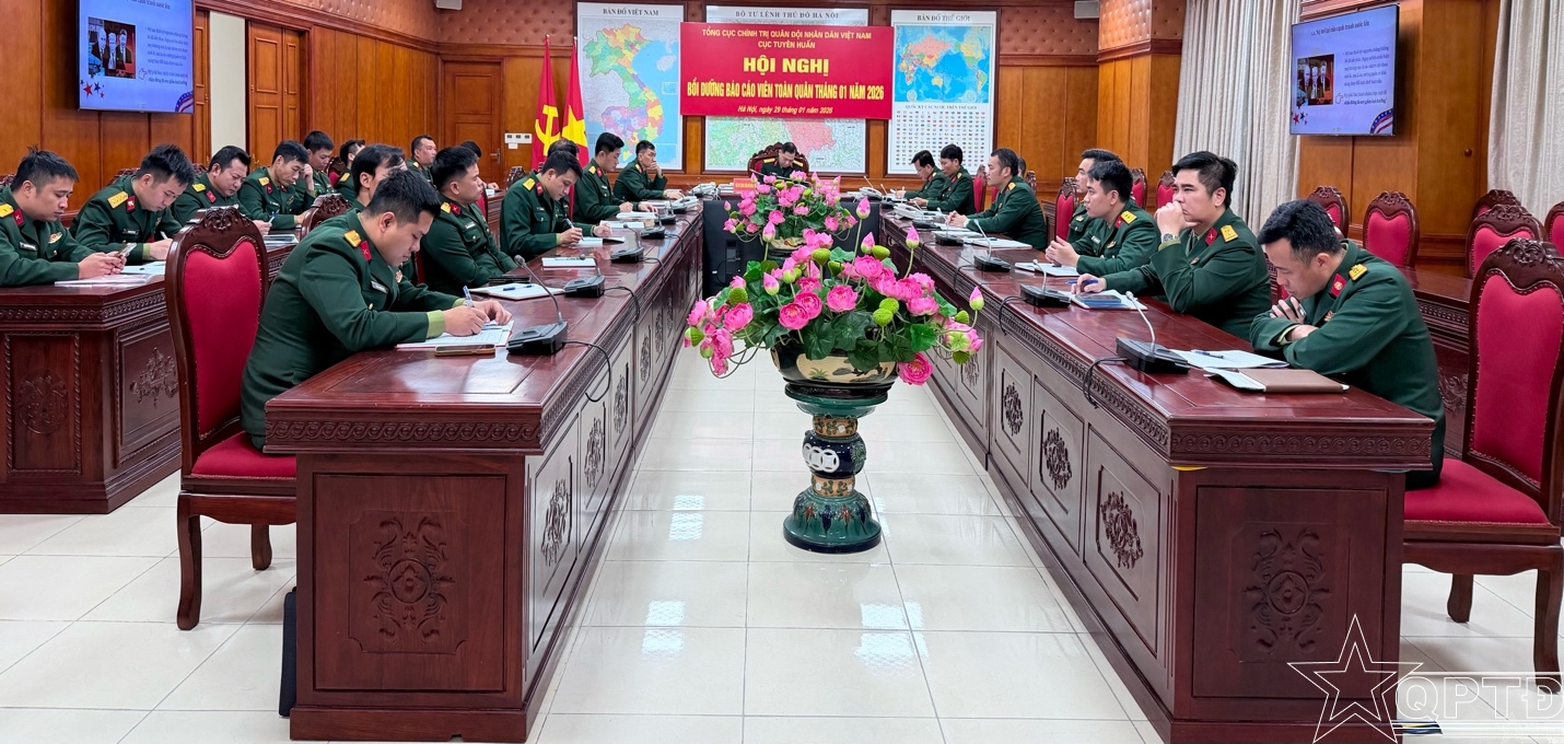 QPTĐ-Sáng 29-1, Cục Tuyên huấn, Tổng cục Chính trị Quân đội nhân dân Việt Nam đã tổ chức Hội nghị bồi dưỡng Báo cáo viên toàn quân tháng 1/2026 theo hình thức trực tiếp và trực tuyến.