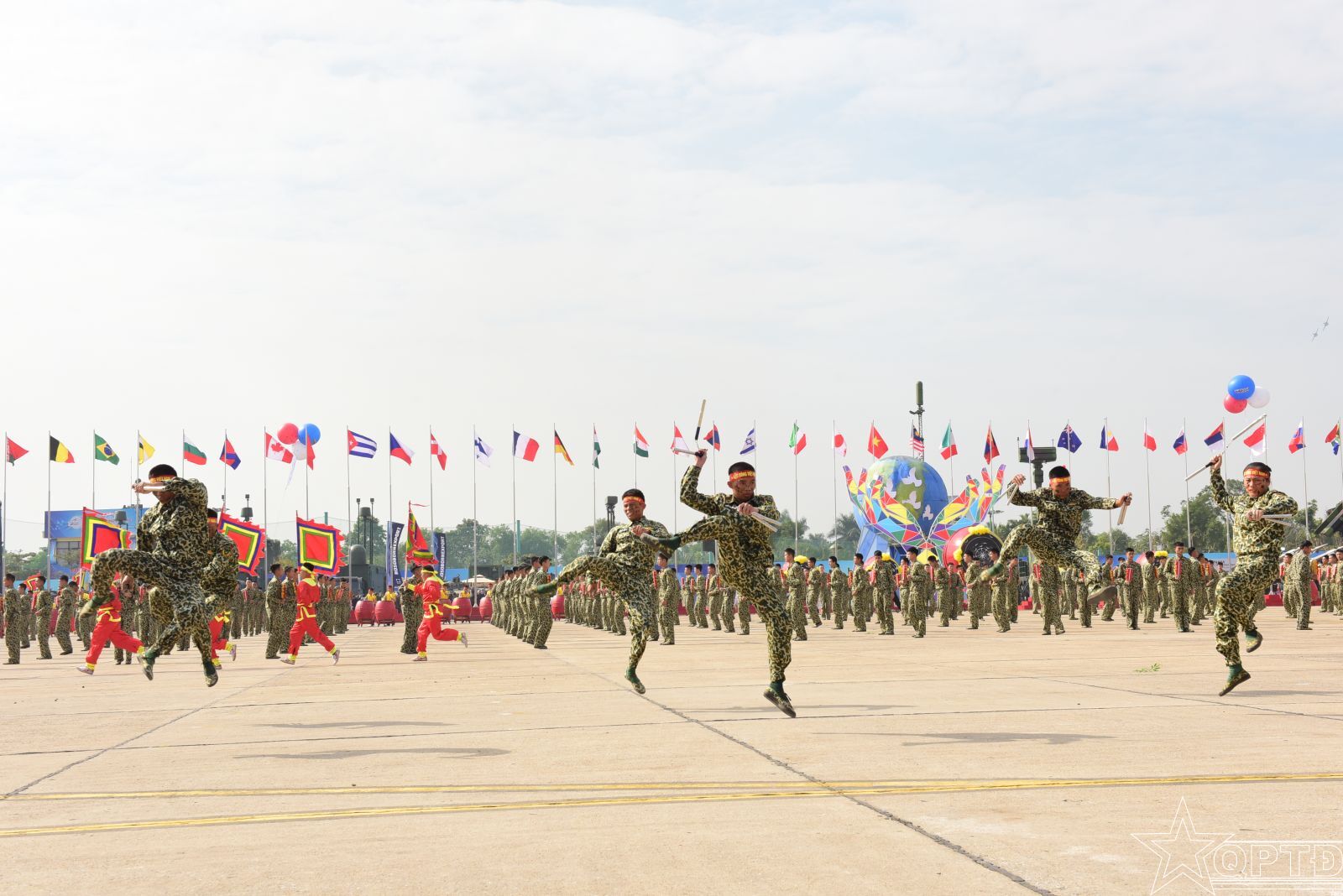 Đặc công biểu diễn các bài quyền trận cổ truyền như nam long quyền, song côn nhị khúc, song đoản côn.
