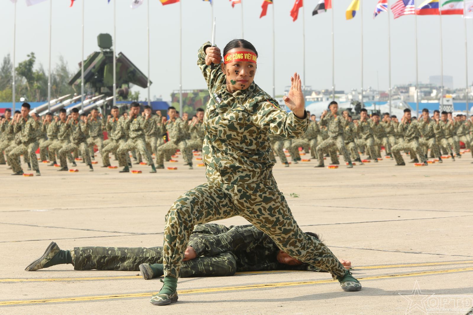 QPTĐ- Tại Triển lãm Quốc phòng Quốc tế Việt Nam 2024 khai mạc sáng 19/12, lực lượng bộ đội Đặc công của Quân đội nhân dân Việt Nam đã trình diễn những bài võ thuật chiến đấu gây ấn tượng mạnh với khán giả và các vị đại biểu. Dưới đây là một số hình ảnh biểu diễn của các chiến sĩ đặc công.