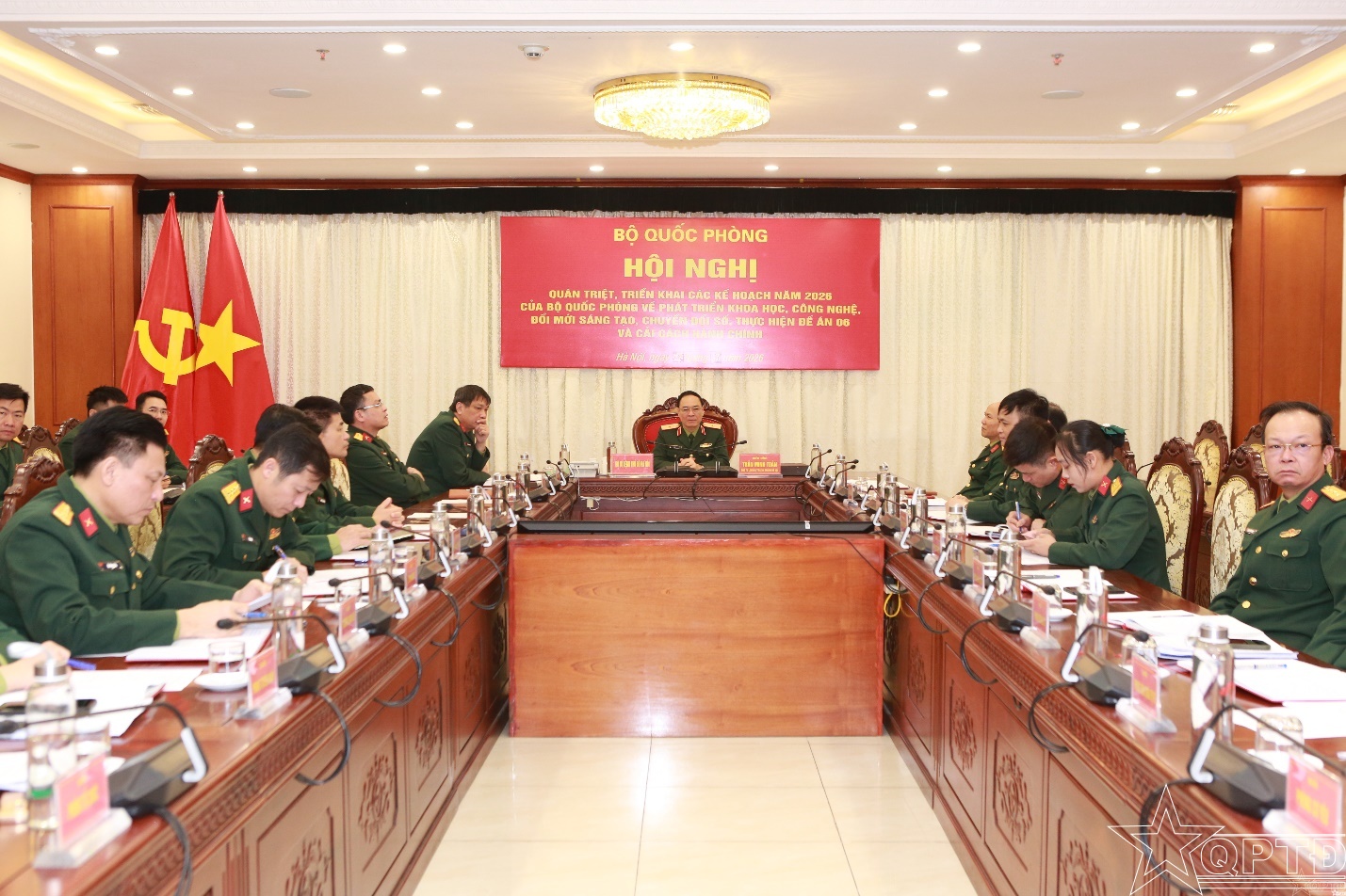 QPTĐ-Sáng 11-3, Bộ Quốc phòng tổ chức Hội nghị quán triệt, triển khai các kế hoạch năm 2026 của Bộ Quốc phòng về phát triển khoa học, công nghệ, đổi mới sáng tạo, chuyển đổi số (KHCN, ĐMST, CĐS), thực hiện Đề án 06 và cải cách hành chính bằng hình thức trực tiếp và trực tuyến tới các điểm cầu trong toàn quân.