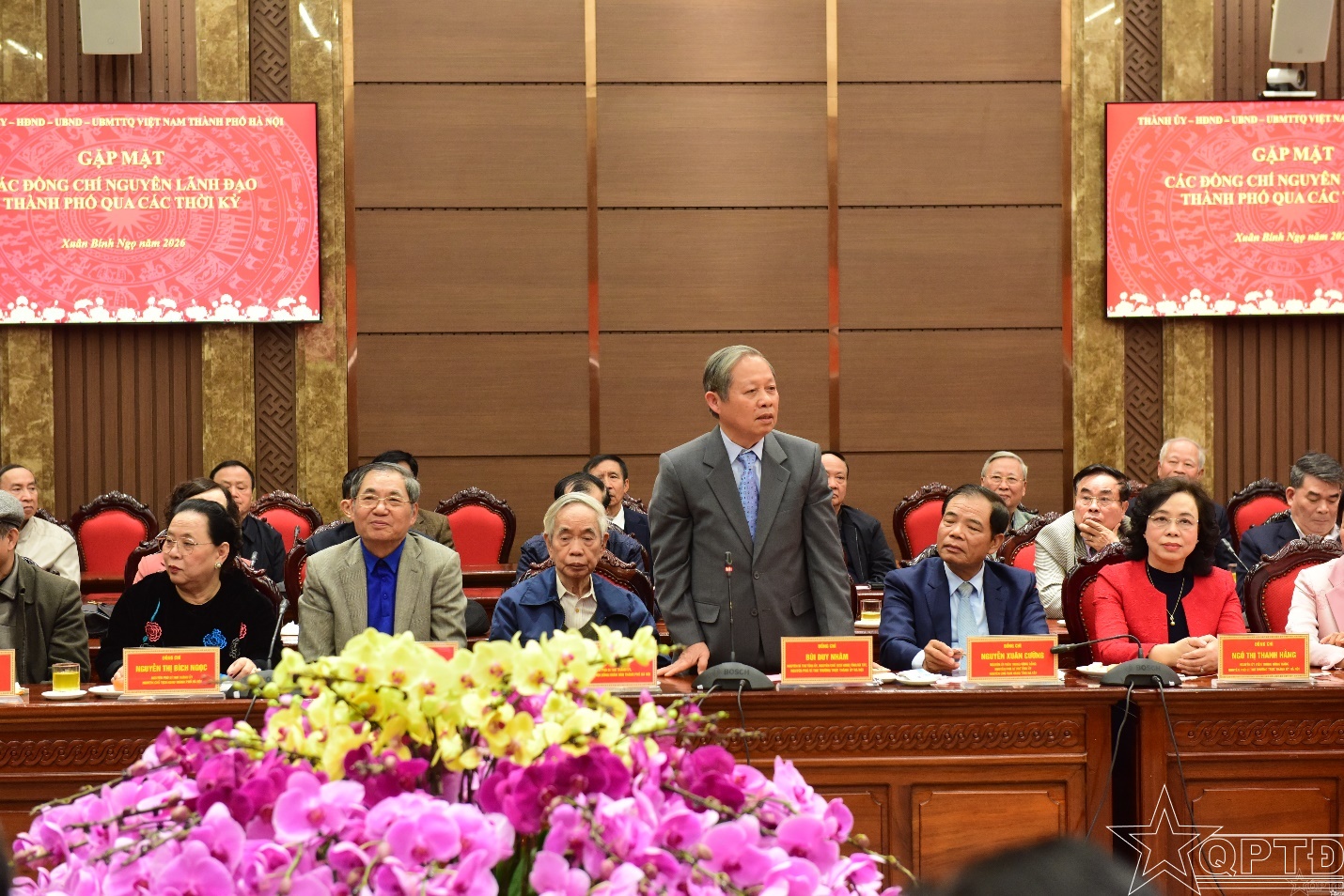 QPTĐ-Trong không khí hân hoan chuẩn bị đón Tết Nguyên đán Bính Ngọ, chiều ngày 2-2, Thành ủy - HĐND - UBND - Ủy ban MTTQ Việt Nam thành phố Hà Nội đã tổ chức buổi gặp mặt các đồng chí nguyên lãnh đạo Thành phố qua các thời kỳ. Đây là hoạt động thường niên mang ý nghĩa nhân văn sâu sắc, thể hiện đạo lý “Uống nước nhớ nguồn” và sự gắn kết giữa các thế hệ lãnh đạo Thủ đô.
