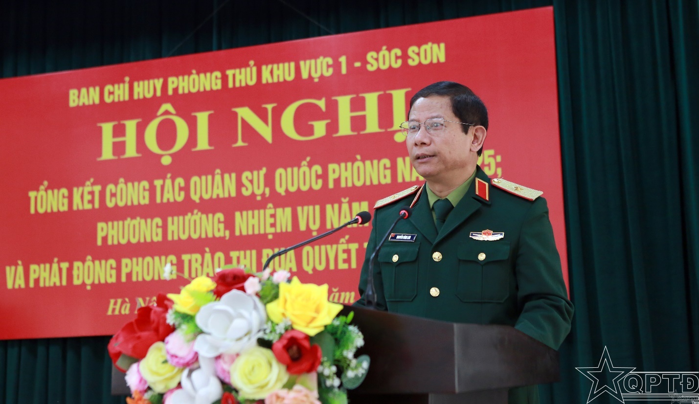 Phát biểu chỉ đạo, Thiếu tướng Nguyễn Đình Lưu, Phó Tư lệnh Bộ Tư lệnh Thủ đô Hà Nội đã biểu dương và ghi nhận những kết quả trong thực hiện nhiệm vụ quân sự, quốc phòng năm 2025 của Ban CHPTKV 1 – Sóc Sơn. Đồng chí Phó Tư lệnh nhấn mạnh Đảng uỷ, Bộ Tư lệnh Thủ đô Hà Nội luôn đánh giá cao công tác tham mưu tích cực, chủ động và có hiệu quả Đảng uỷ, Ban CHPTKV 1 – Sóc Sơn, góp phần hoàn thành toàn diện nhiệm vụ quân sự, quốc phòng của LLVT Thủ đô trong năm 2025.