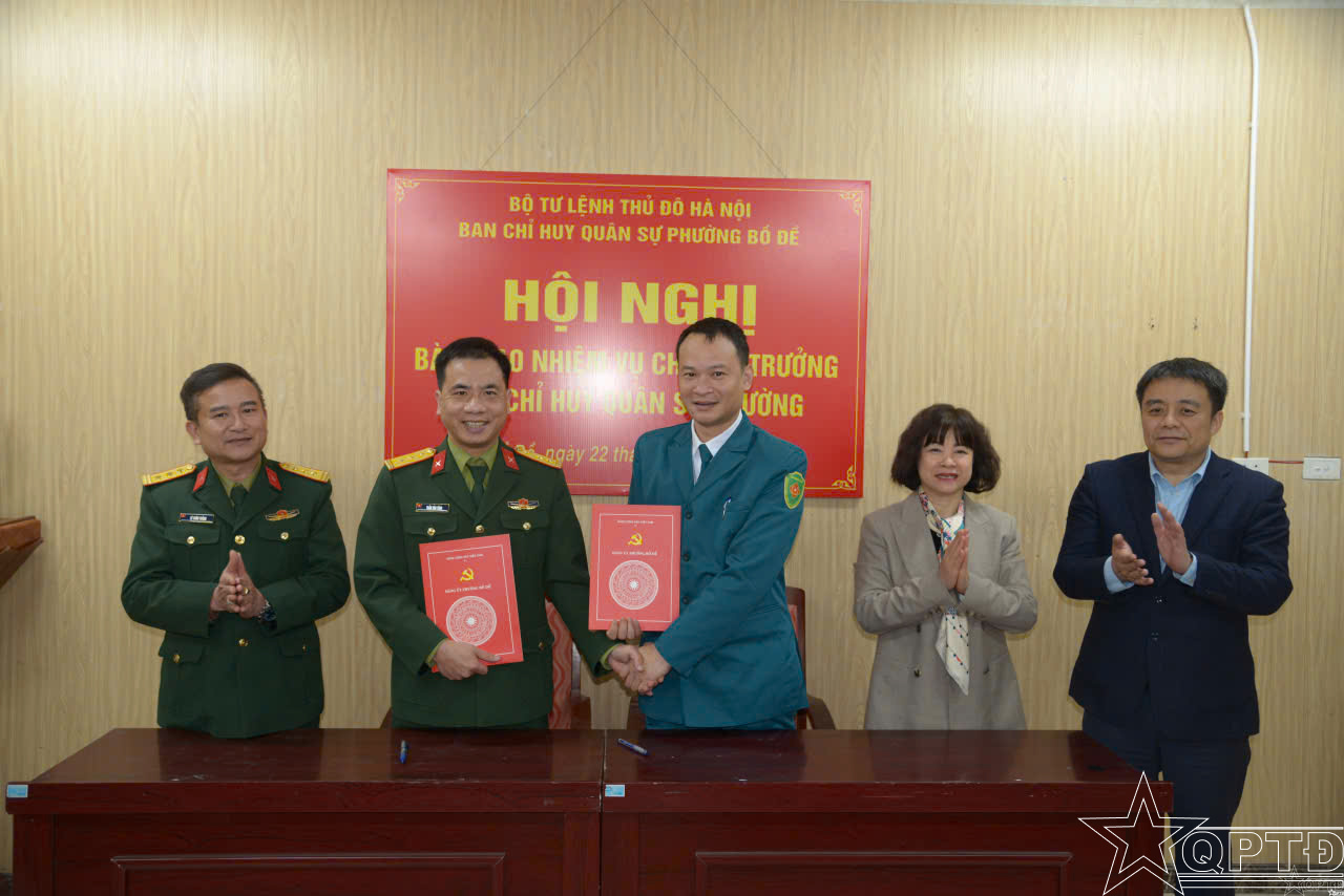 Ký kết biên bản bàn giao Chỉ huy trưởng Ban CHQS phường Bồ Đề.