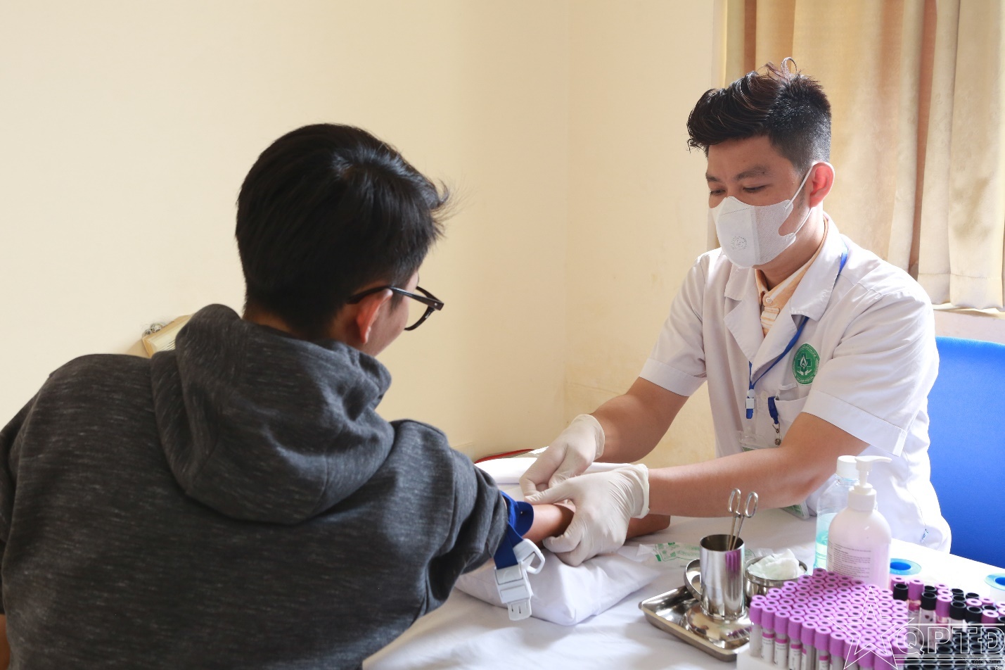 Lấy máu xét nghiệm HIV tại Bệnh viện Đa khoa Gia Lâm.