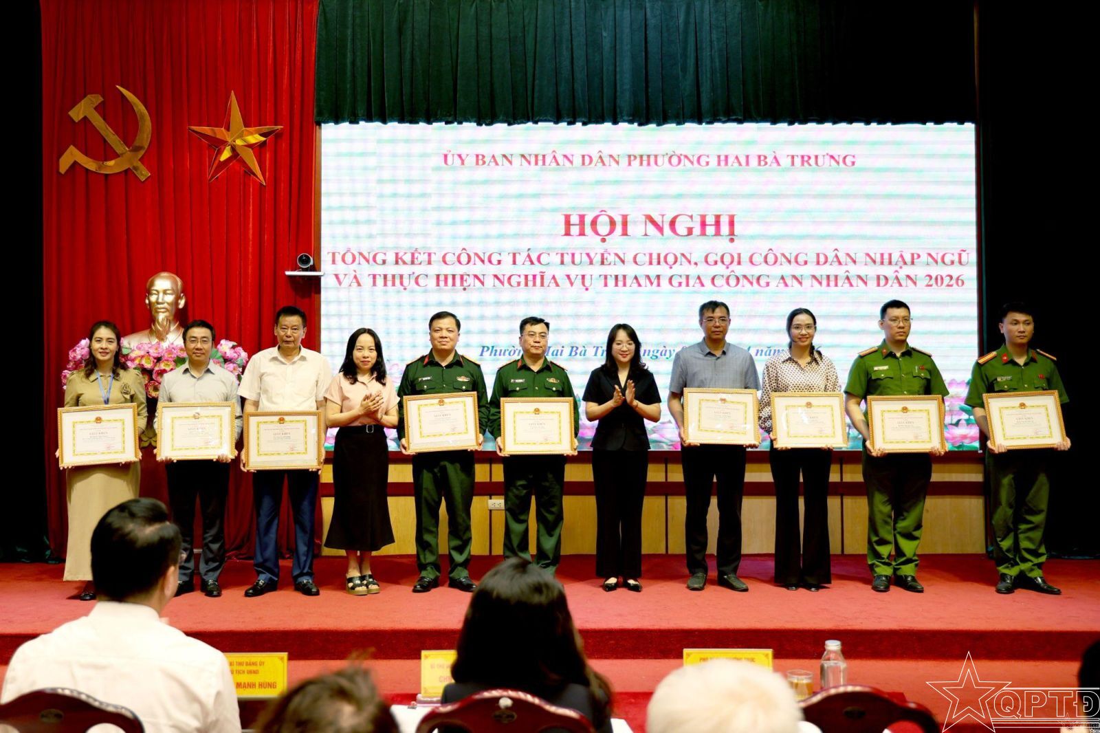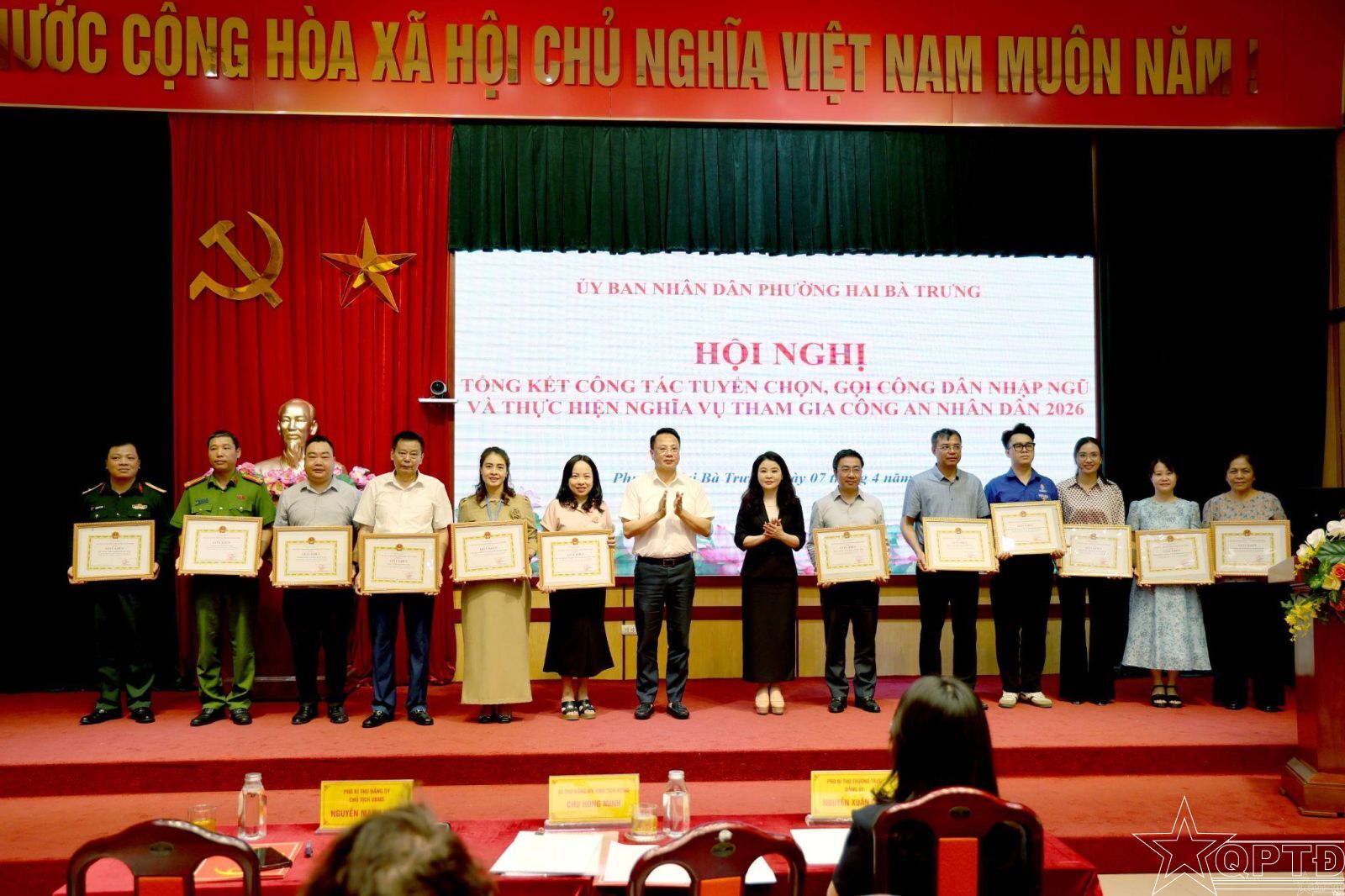 Nhân dịp này, UBND phường Hai Bà Trưng đã tặng Giấy khen cho 12 tập thể và 37 cá nhân có thành tích xuất sắc trong công tác tuyển chọn, gọi công dân nhập ngũ và thực hiện nghĩa vụ tham gia Công an nhân dân năm 2026.