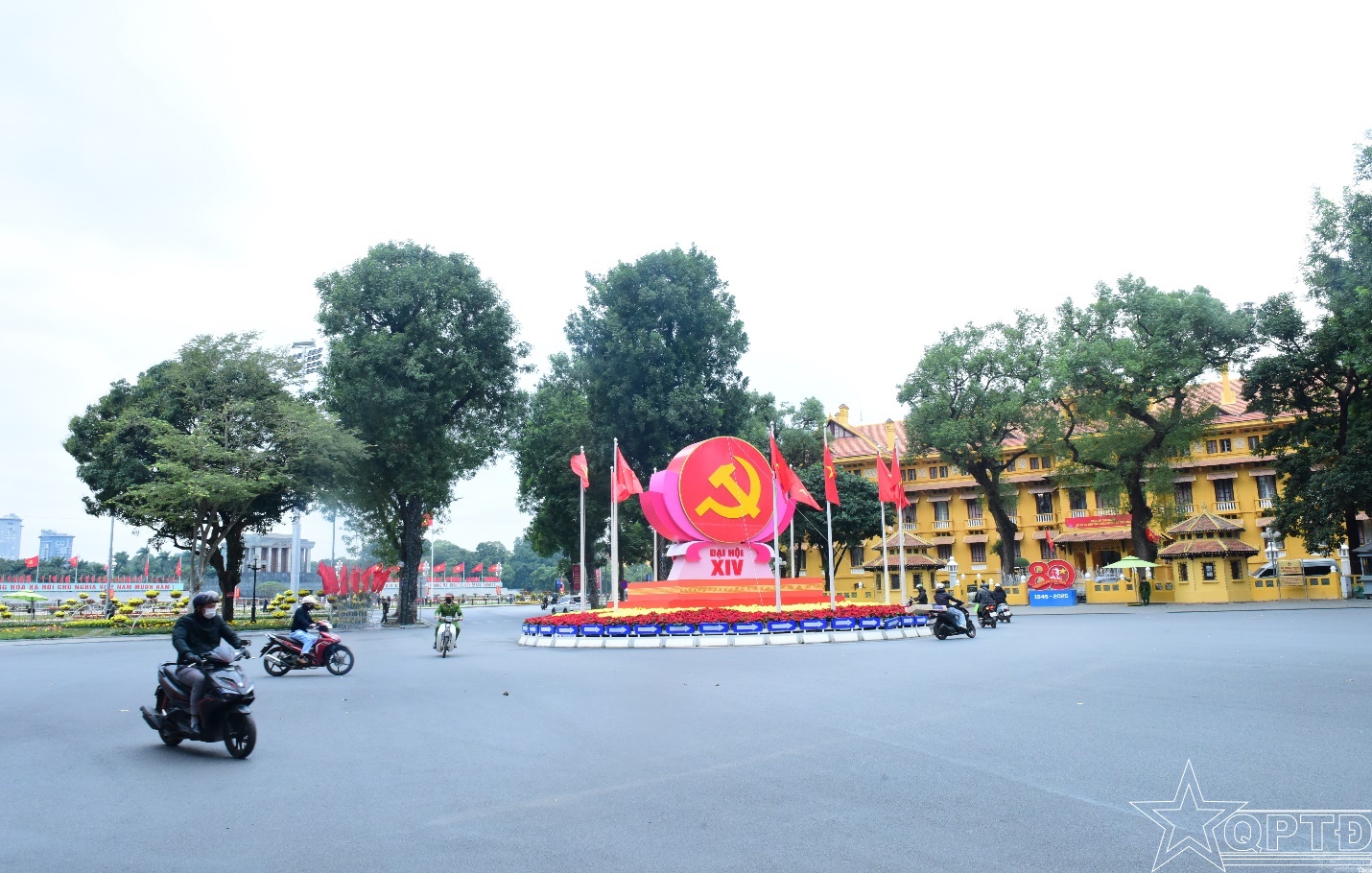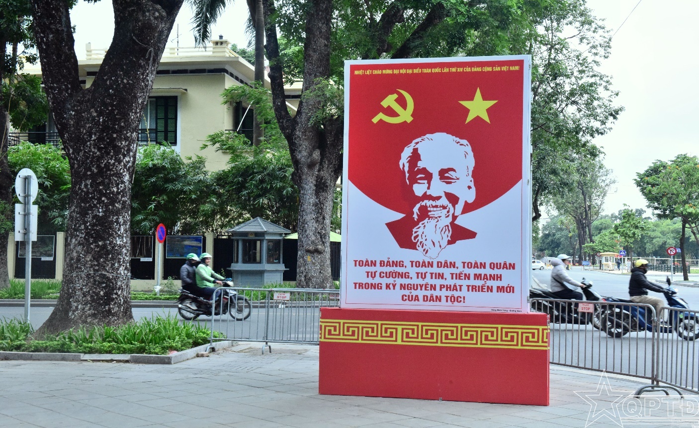 QPTĐ-Những ngày cận kề Đại hội đại biểu toàn quốc lần thứ XIV của Đảng, Thủ đô Hà Nội rực rỡ sắc đỏ cờ hoa, bừng lên khí thế trang nghiêm và phấn khởi. Trên khắp các tuyến phố, các trục đường kết nối từ trung tâm Thành phố đến Trung tâm Hội nghị quốc gia, nơi diễn ra Đại hội, hệ thống pano, áp phích, khẩu hiệu tuyên truyền được trang hoàng đồng bộ, nổi bật. Không gian đô thị mang đậm dấu ấn chính trị - văn hóa ấy thể hiện niềm tin son sắt, sự kỳ vọng lớn lao của cán bộ, đảng viên và nhân dân cả nước hướng về Đại hội XIV, dấu mốc lịch sử mở ra kỷ nguyên phát triển mới của đất nước.