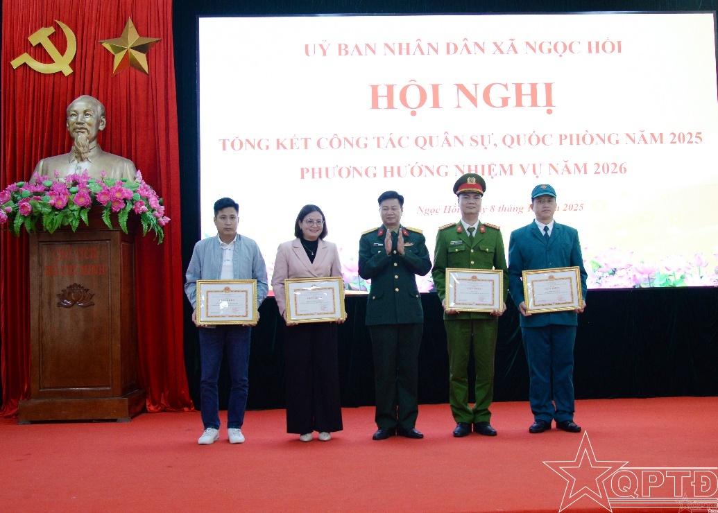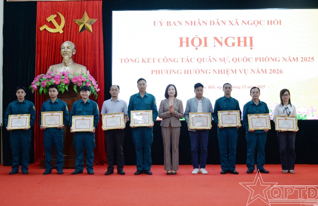 Theo báo cáo kết quả thực hiện nhiệm vụ đã nêu: Năm 2025, công tác quân sự-quốc phòng của xã Ngọc Hồi tiếp tục được triển khai toàn diện, hiệu quả. Công tác tuyên truyền, phổ biến pháp luật về quốc phòng-an ninh được thực hiện sâu rộng với nhiều hình thức qua hệ thống loa truyền thanh, hội nghị, sinh hoạt đoàn thể; góp phần nâng cao nhận thức của cán bộ và nhân dân về nhiệm vụ bảo vệ Tổ quốc. Xã đã tổ chức quán triệt đầy đủ các chỉ thị, nghị quyết của Đảng ủy các cấp, gắn với nâng cao chất lượng chính trị, tư tưởng trong lực lượng vũ trang; chủ động triển khai các hoạt động chào mừng những ngày lễ lớn của đất nước, thực hiện nghiêm công tác bảo mật và bảo vệ chính trị nội bộ. Trong năm, Hội đồng Giáo dục quốc phòng-an ninh xã được kiện toàn, rà soát đúng, đủ các đối tượng bồi dưỡng quốc phòng và an ninh. Lực lượng dân quân được xây dựng vững mạnh, đúng chỉ tiêu. Xã tổ chức kết nạp dân quân mới, cấp giấy chứng nhận hoàn thành nghĩa vụ dân quân và thực hiện tốt công tác quy hoạch, bổ nhiệm cán bộ dân quân, dự bị động viên.