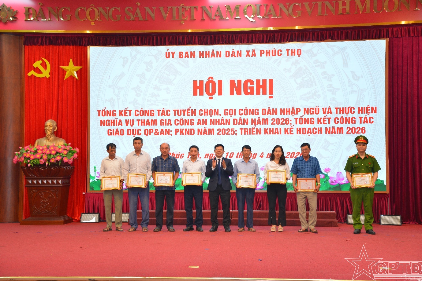QPTĐ-Sáng 10/4, UBND xã Phúc Thọ tổ chức hội nghị tổng kết công tác tuyển chọn, gọi công dân nhập ngũ và thực hiện nghĩa vụ tham gia Công an nhân dân năm 2026; công tác phòng không nhân dân (PKND), giáo dục quốc phòng và an ninh (QP&AN) năm 2025.