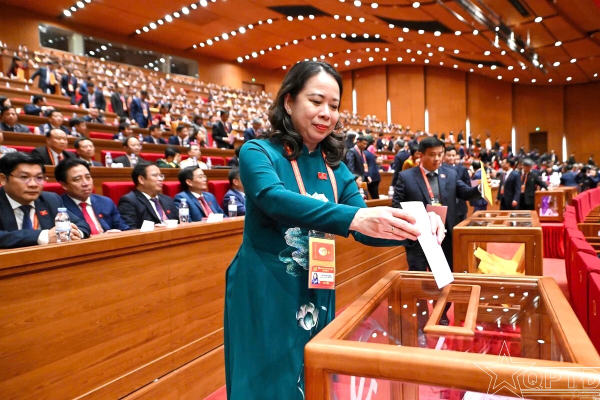 Đồng chí Võ Thị Ánh Xuân, Phó Chủ tịch nước bỏ phiếu bầu Ban Chấp hành Trung ương Đảng khóa XIV.